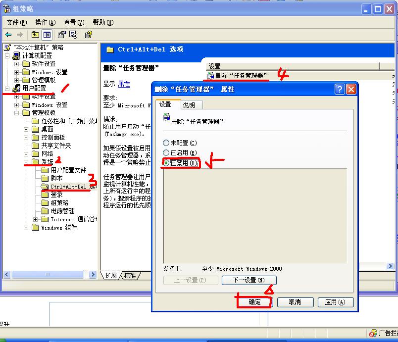 开始--运行--输入GPEDIT.MSC--回车,然后按照下图操作,看行不行?