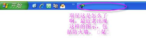 最近这两天开机后,发现瑞星杀毒软件、防火墙出现这样的情况,一个图标在任务栏里,既无法关闭,又无法打开,感觉不爽。以前没这样的问题的。不知道大家的有没有这样的状况。
