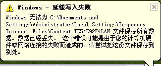 最近电脑一直莫名其妙的有死机状态,就是有时候在用的好好的情况下电脑和鼠标会出现一顿一顿的情况,然后什么都用不了,什么也打不开了,过不了一会就会出现一个“系统缓存写入失败”的对话框,有时候出了这样的一个对话框之后速度会恢复正常,但有时候就会不停的出这样的对话框,而且每次里面的内容都不相同,直到死机,我现在完全受不了了,系统我也重新做过一次,但这个问题依然存在,下面是我截的图,图不多,因为死机状态不好截图,请高高手帮我看看到底是怎么回事,为什么会出现这样的情况,要怎么解决,谢谢!