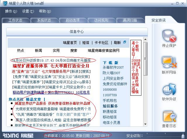 时光倒流4个月~瑞星显示4月6号的信息~有图!!!!!!!!!!!!!!!!