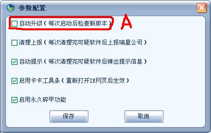 ,然后再安装卡卡3.2。安装完成后,先找到下图A处,取消勾选,单击“保存”按钮,然后再联网,这样就可以了。