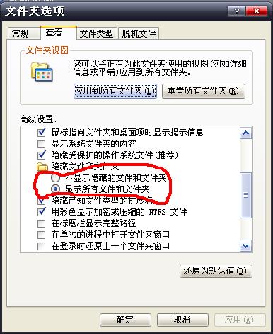 “HKEY_LOCAL_MACHINE\SOFTWARE\Microsoft\Windows\CurrentVersion\Explorer\Advanced\F older\Hidden\SHOWALL”, 将CheckedValue改为1,重启了也没用的