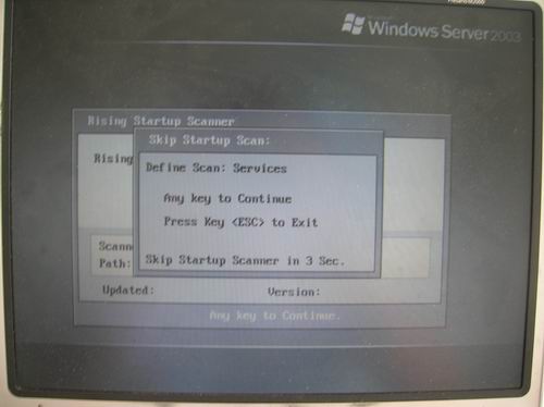 【求助】我的瑞星开机界面变成英文的了,WIN2003登录后就立即注销,如此反复