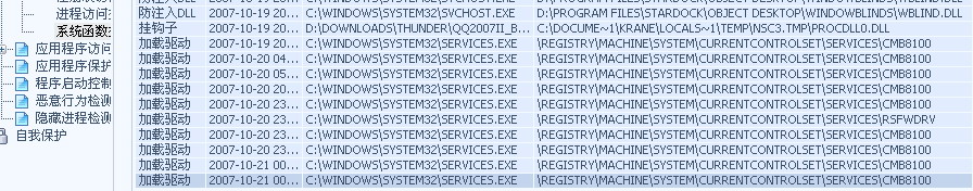 2、瑞星08的主动防御日志里,总是会反复出现下图中选中的那项加载驱动的内容