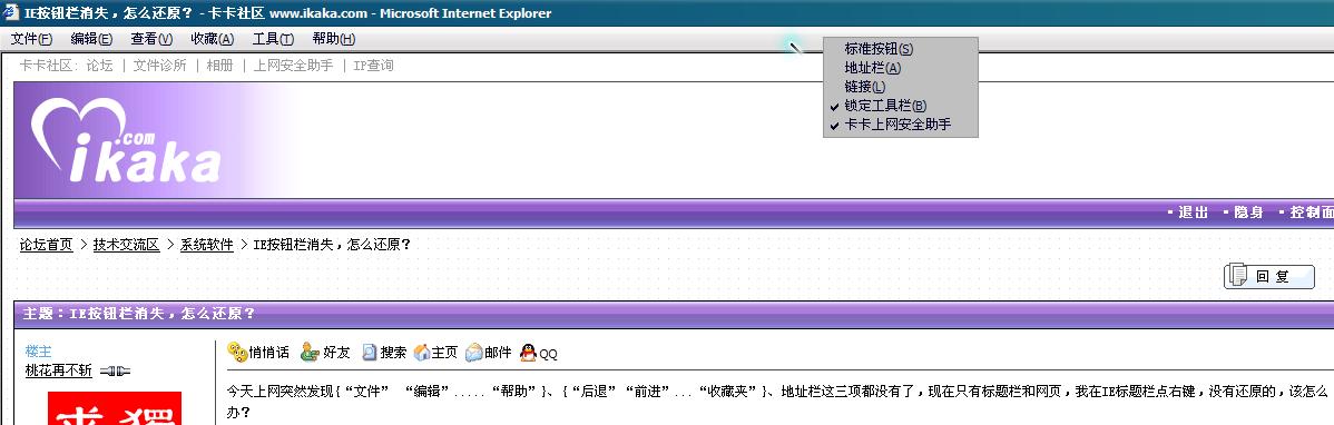 如何恢复丢失的Explorer或IE浏览器的菜单栏及工具栏