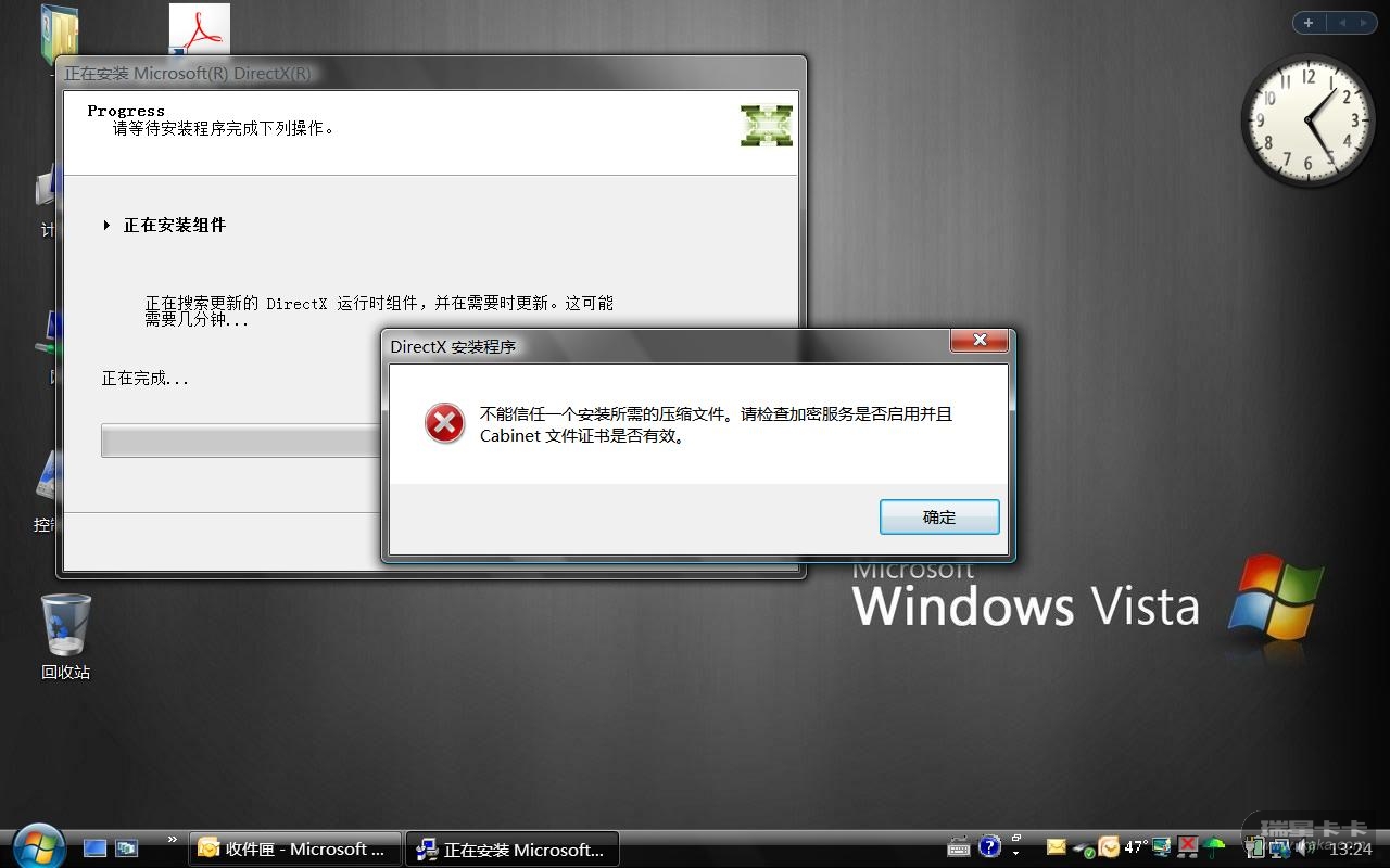 如下面大家所看到的,我原来的XP系统可以玩极品飞车9,但是VISTA不行,说要升级,但是在升级快要结束的时候出现以下的错误,请高人指点帮忙解决下,不胜感激!