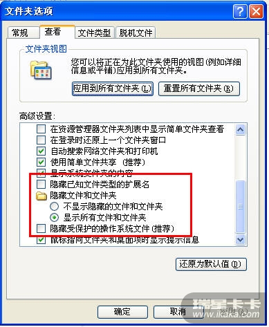 工具——文件夹选项——查看——显示隐藏的文件及文件夹