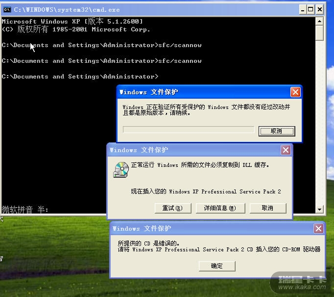sfc/scannow命令修复xp为什么失败?
