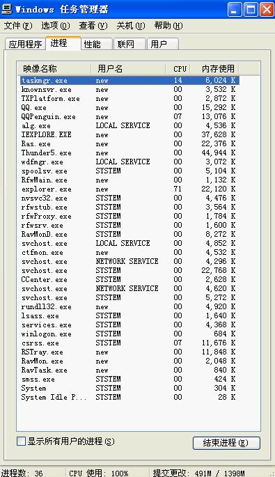 常被病毒冒充的进程名有:iexplorer.exe、expiorer.exe、explore.exe。explorer.exe就是我们经常会用到的“资源管理器”。如果在“任务管理器”中将explorer.exe进程结束,那么包括任务栏、桌面、以及打开的文件都会统统消失,单击“任务管理器”→“文件”→“新建任务”,输入“explorer.exe”后,消失的东西又重新回来了。explorer.exe进程的作用就是让我们管理计算机中的资源。