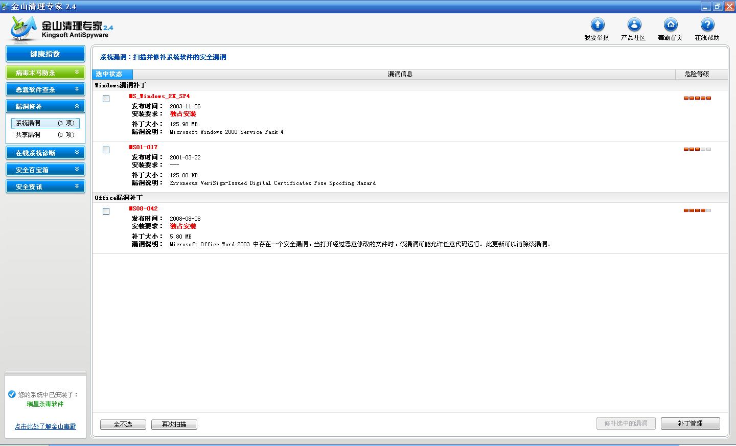 偶用金山清理专家扫了遍系统漏洞,结果出来个这个: