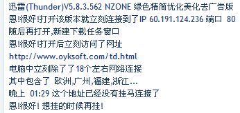 刚才在绿色软件联盟看到一篇文章《快乐无极版迅雷可能有后门续》,下面是原文的一段: