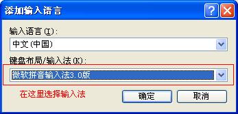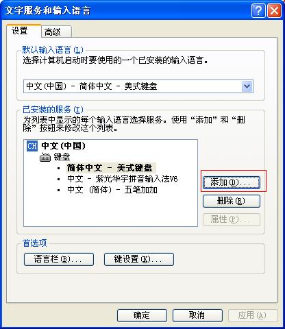 右键单击语言栏,选择右键菜单中的“设置”,在弹出的程序中按“添加”按钮,确保“输入语言”是“中文(中国)”,在下面的“键盘布局/输入法”中选择“中文(简体)-智能ABC”