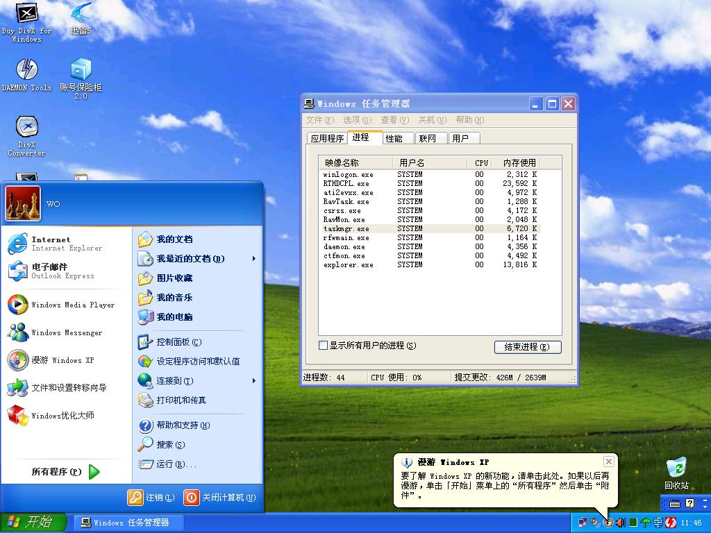 xp任务管理器中,任何用户打开的程序 其用户名都显示为network service,在安全模式下用户名显示显示正常,为administrator!这是为什么啊