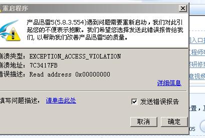 BT资源下载没完成,安装完成新版迅雷5后开始继续下载,迅雷5新版突然崩溃了,迅雷5自动提示出现问题,我给你看看资料问题: