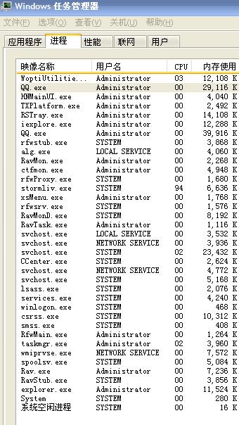 进程中好像是暴风影音的进程占了很大,不知当时楼主是不是在看电影?如果不是,可以将其在启动项里去除。