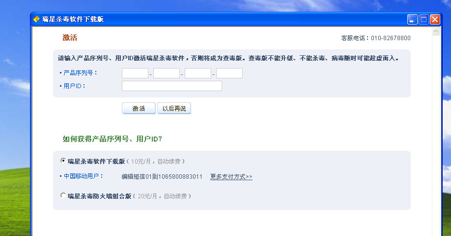 如果是通过下载卡卡助手下载的免费瑞星杀毒软件,无需输入产品序列号。