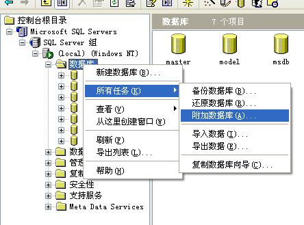 ps:还原的时候将数据库文件和日志文件复制到适当的位置,右键点击数据库,选“所有任务”——附加数据库,就可以了。