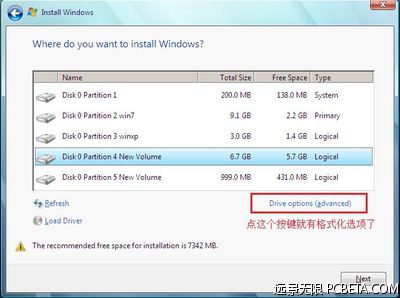 三、重启选择Nt6 hdd Installer后自动进入安装界面,安装操作和光盘一样,装在其它分区上成双系统、格式化C盘结果为单系统就随你所需了补充一张常识图,小部分朋友不清楚怎样在安装过程中格式化分区
