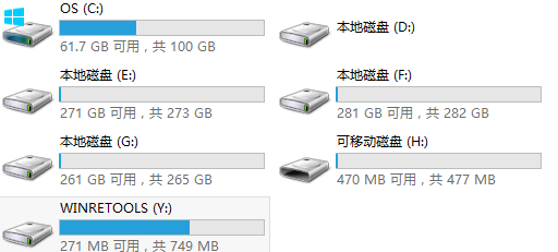 WINRETOOLS的749MB的可能是什么软件虚拟出来,或者是那个750MB的分区的。