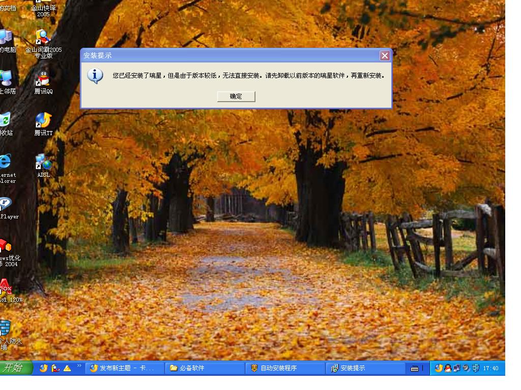 先装原2004版本,再用瑞星自带的卸载程序卸载,重启,安装2005版17.30.10安装包,再进行跨版本升级。