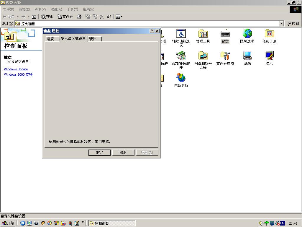 不知道是不是XP用多了脑子有点犯混,win2000的控制面板里是不是应该有“输入法”?反正在我的2000控制面板里没看到。