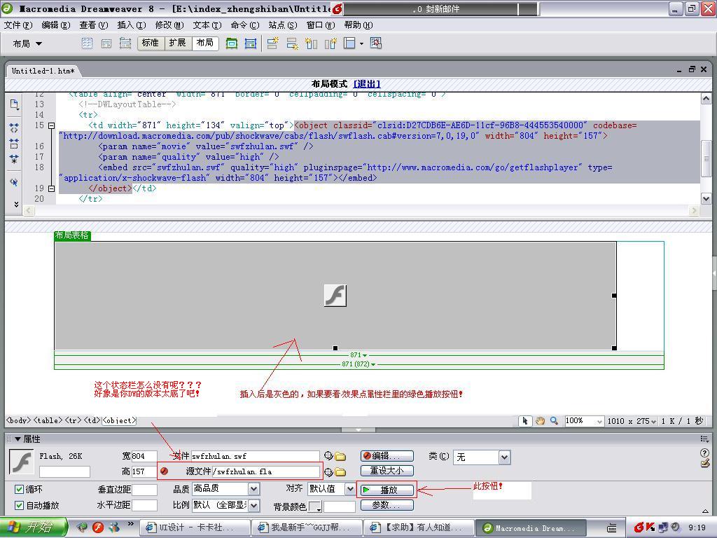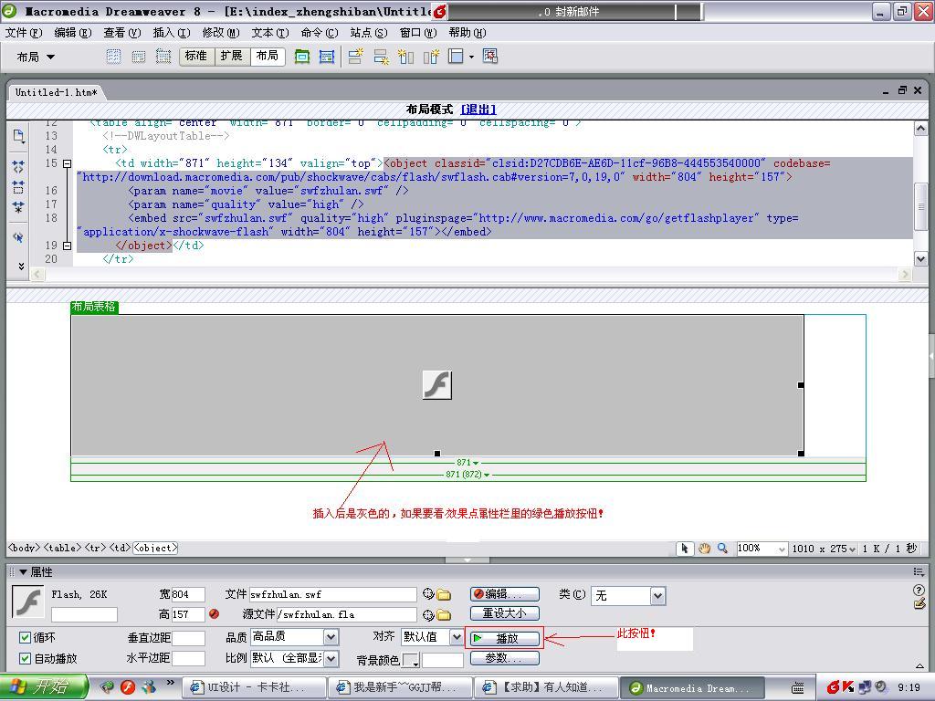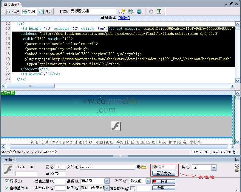 我在dw里插入flash的banner可是为什么是灰色的呢?