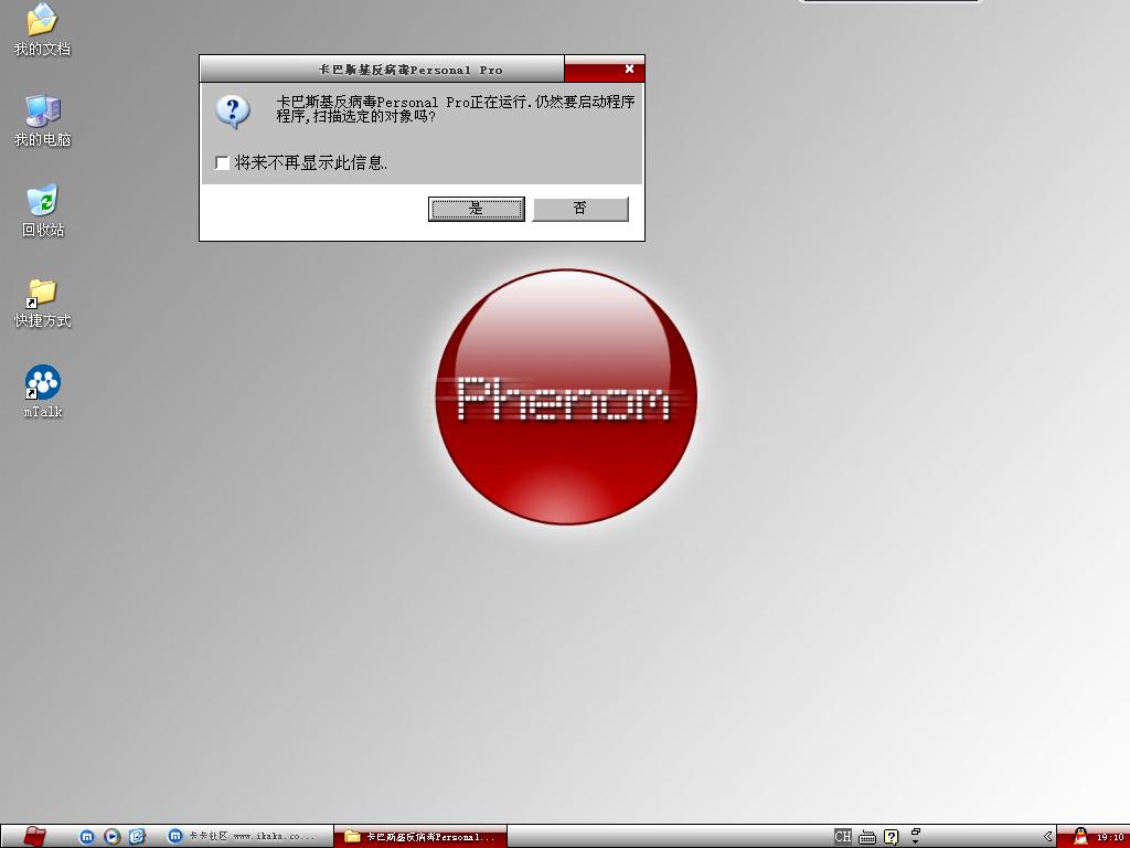 卡巴也有监控的啊,那个监控不关吗?为什么我每次命令行查毒的时候(就是对某对象右击),会出来这个图,说卡巴在运行?请问卡巴怎么才能让他一点也不自己运行??(平常我想只开瑞星!!)
