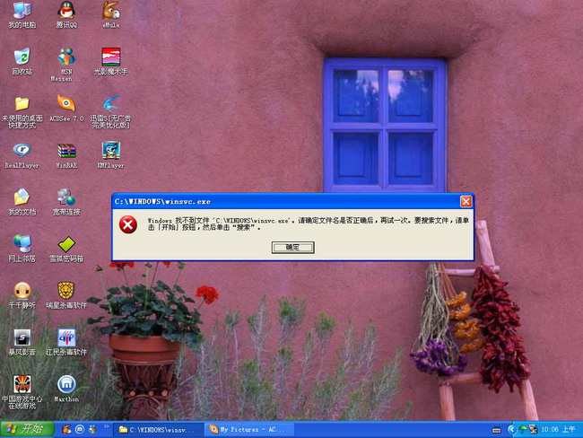 "windows找不到文件'C:\WINDOWS\winsvc.exe'。请确定文件名是否正确后,再试一次。要搜索文件,请单击[开始]按钮,然后单击“搜索”。"请高手告诉一声.[img][/img]
