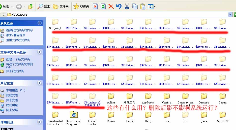 系统更新后,在C:\windows下生成了一些隐藏目录,这些是做什么用的,能删除吗?