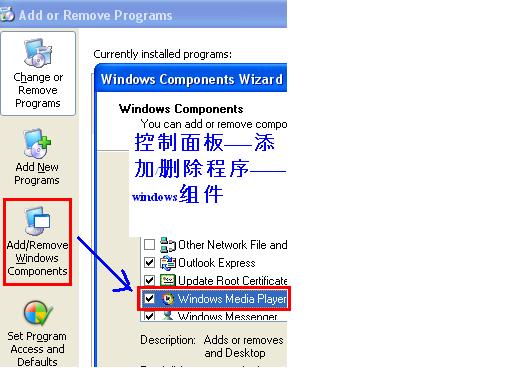 先删除windows组件里wmp.