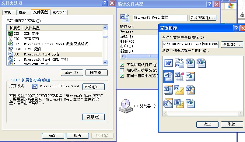 我安装office2003后,保存的word、execl文件的图标还是2000时的图标