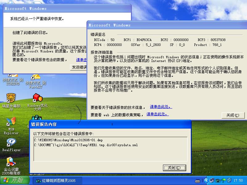 蓝屏时显示为:Aproblen----stop:0×00000050 (0×E04FF44A, 0×00000000, 0×805379280×000000000)