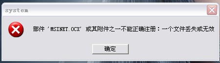 1、从其他电脑复制或者下载MSINET.OCX,保存在System32目录下,2、开始-运行“Regsvr32 MSINET.ocx”