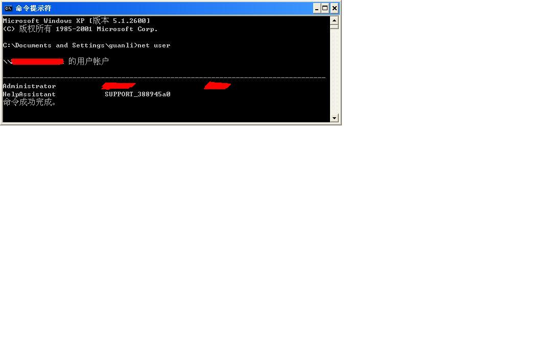我的电脑只有两个用户名,可是使用net user命令检查却发现还有另外3个账户,请问这是怎么回事?特别是那个administratorv账户,我在初次安装时,已经把它更名了,怎么还存在呢?如图: