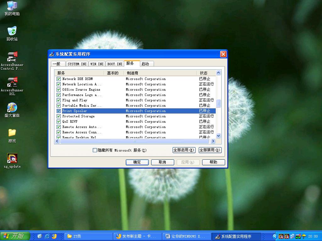 msconfig里面的服务选项的Print Spooler(打印机)功能已停止,怎么开启?选择下面的全面开启是所有的服务都开启还是只开启选中的那个!我记得有一个什么组策略是管这个的?是哪个文件来着?