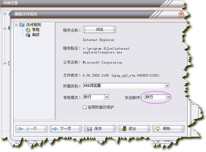 在防火墙里,找到设置,详细设置,访问规则,找到foxmail,ie如图设置看看能不能解决问题。