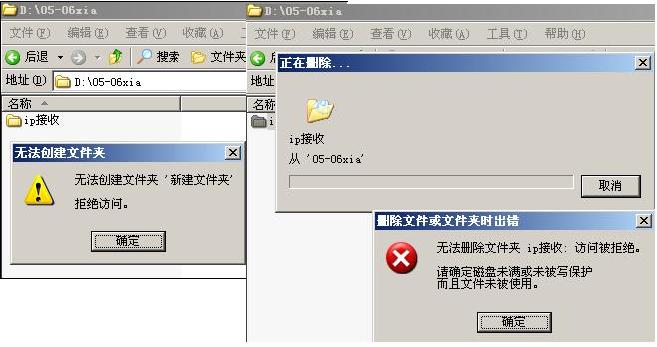 某一个文件夹里不能创建新文件夹,也不能删除里面的内容.何故?怎么办?