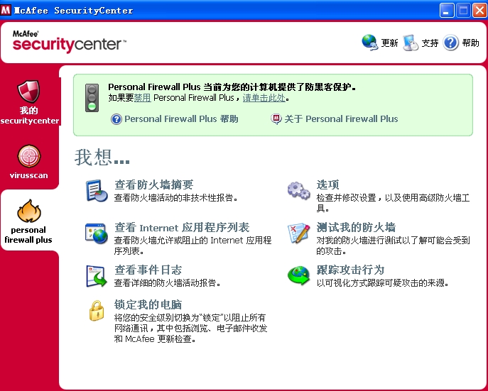 大名鼎鼎的McAfee企业版大家都已经很熟悉,现在McAfee家庭版也出了简体中文版,双字节问题也已解决,这是其主界面安全中心
