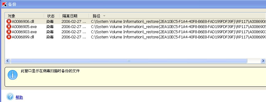 请教卡巴查杀的染毒文件及路径,谢谢!