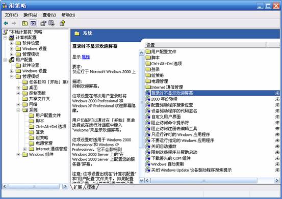 我的电脑是XP2系统的,不知道为什么,开机时没有欢迎使用的界面,而且点击注销也没有“切换用户”。哪位大侠帮帮忙?