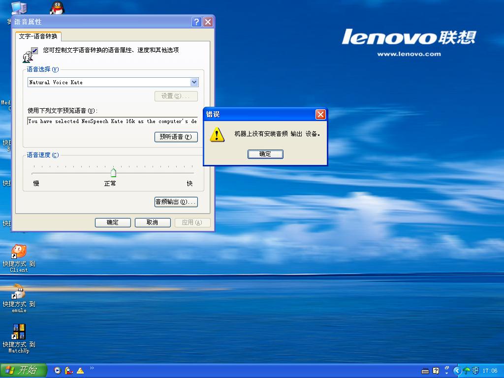 我是xpsp2操作系统,声卡没有问题,但是在控制面板--声音---语音---音频输出设备,提示我没有音频输出设备,可是声卡可以正常发音,声卡是板载的8738型号,如图,由于这个原因,我的自然英语教师版软件不能正常发音,请各位大虾帮忙,小弟谢谢!![img][/img]