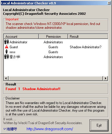 检查Windows NT/2000/XP系统是否被黑客设置了Shadow Administrator (影子管理员)
