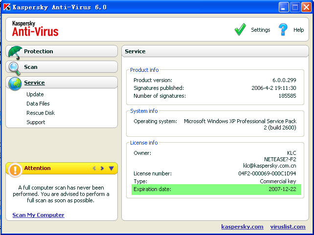 卡巴斯基在30那天结束了测试,以正式版本6.0.0.299.大家可以去下载了.