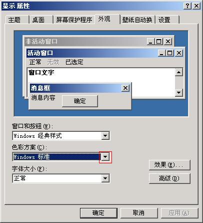 打开色彩方案下拉菜单(红框处)重新点一次windows标准