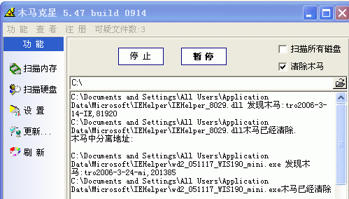 基本上每个星期用瑞星一次,正版的瑞形每天更新,就是没有发现木马,病毒倒是经常扫到.今天用木马克星才扫600多个文件,就找不出来四个木马程序,有点后怕...下面是贴图