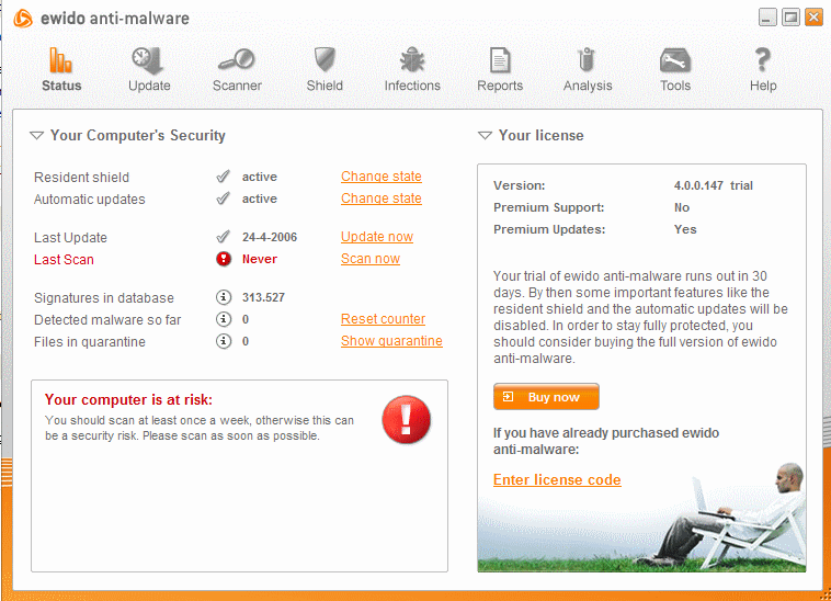 Ewido 被 AVG 收购后,Ewido 4.0 beta 已经需要通过 AVG 网站申请下载: