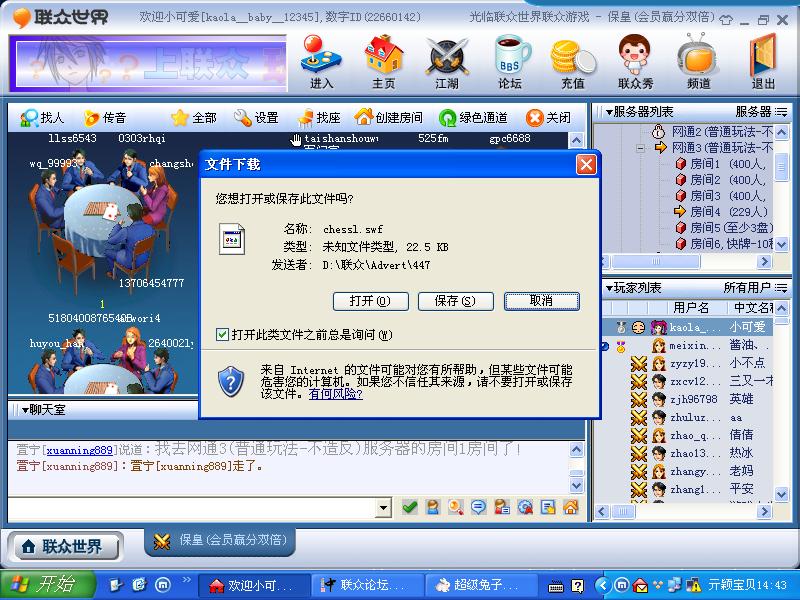 玩联众总弹出一个下载窗口,去联众的论坛只看到有人和我一样的情况,但没找到解决办法,想请教各位怎么能屏蔽这个东西,总弹出来很是不爽