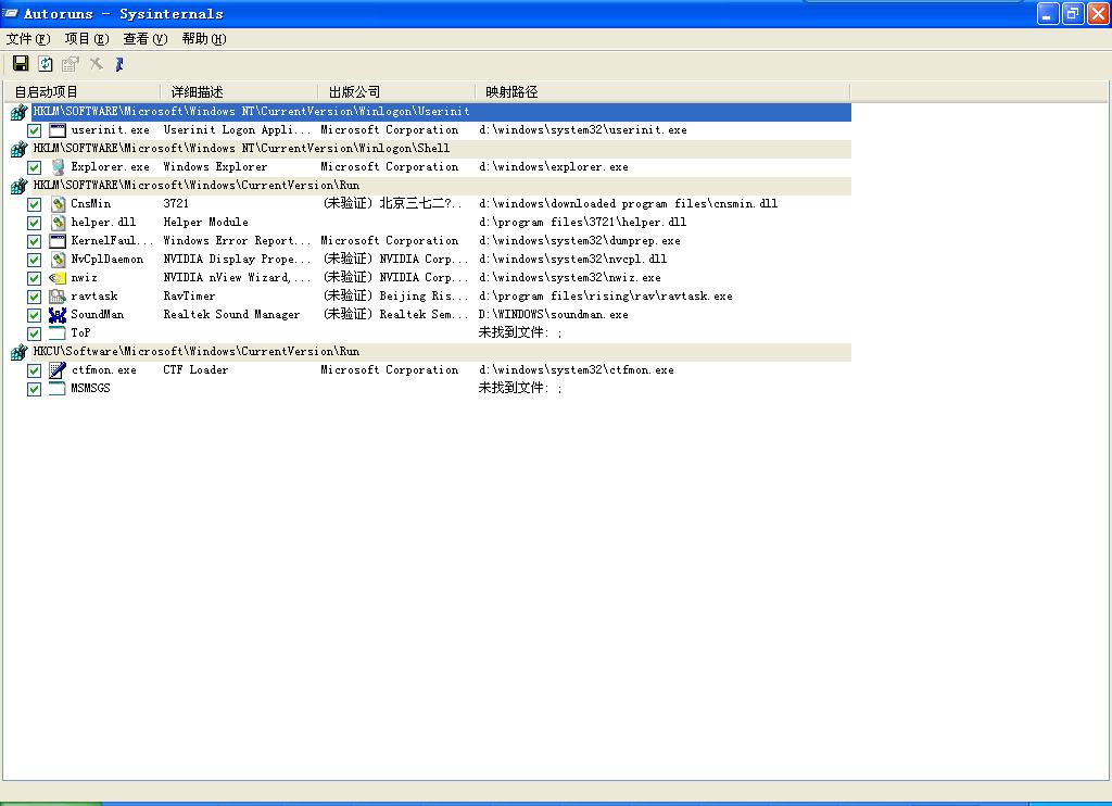 O4 - 启动项HKLM\\Run: [NvCplDaemon] RUNDLL32.EXE D:\WINDOWS\System32\NvCpl.dll,NvStartup