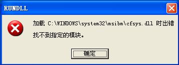 cfsys.dll是个木马,被删了,但模块还在。点开始-运行 输入“regedit”回车,打开的是注册表,要小心操作哦。“编辑”-“查找”输入“cfsys.dll”回车 把查出的C:\windows\system32\msibm\cfsys.dll删去。有几个删几个。OK