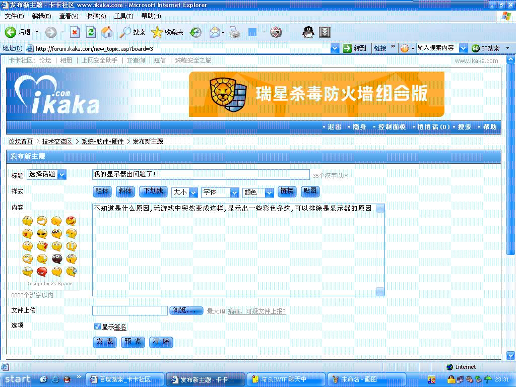 不知道是什么原因,玩游戏中突然变成这样,显示出一些彩色条纹,看附图,可以排除是显示器的原因,如何解决啊